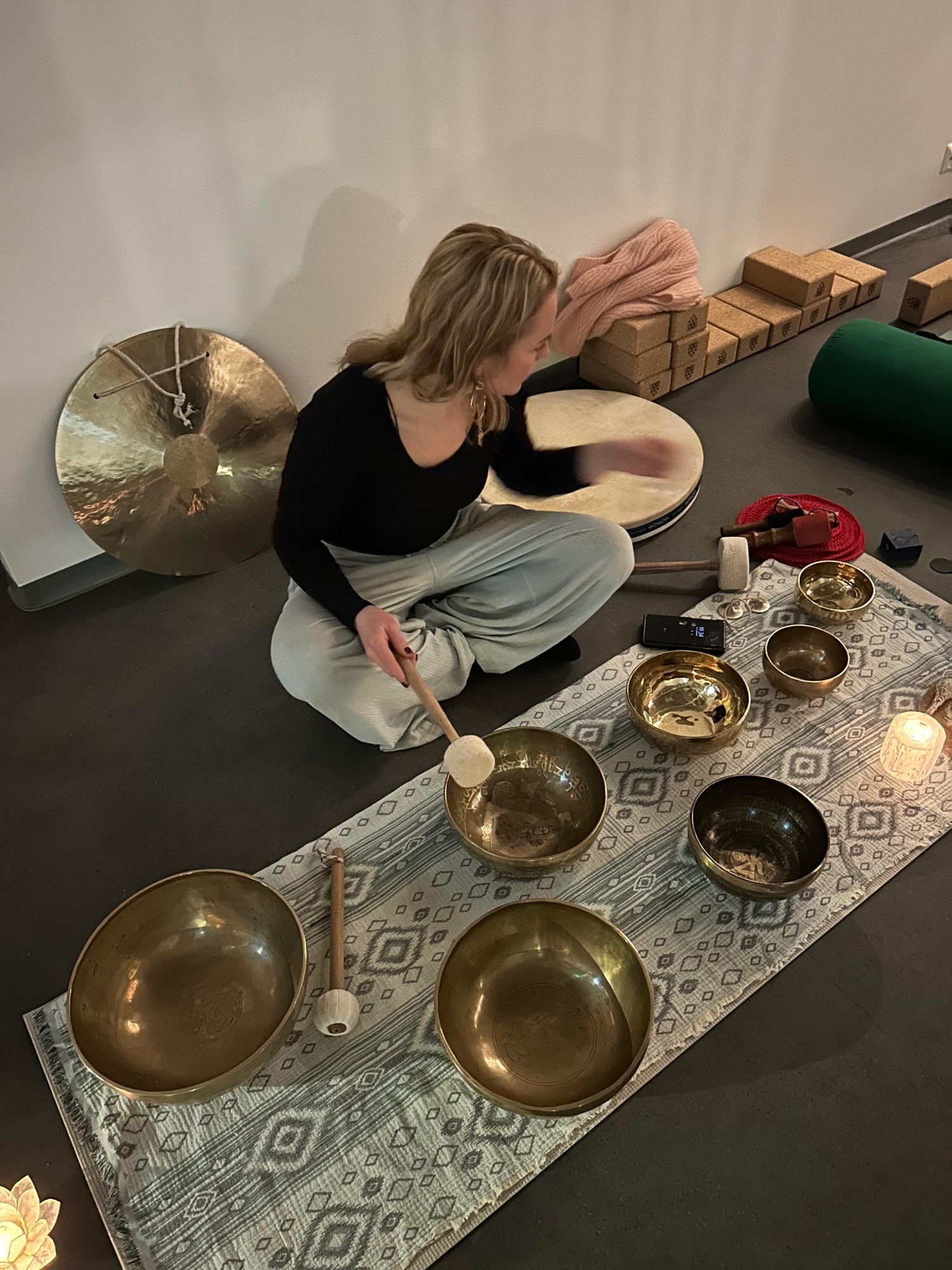 Yhteinen rentoutushetki vahvistaa läsnäoloa ja yhteyttä muihin – jokainen osallistuja saa mahdollisuuden hengähtää, rauhoittua ja antautua äänten kannatteluun. Tämä on hetki, jossa kiire katoaa ja arki saa pysähtyä.