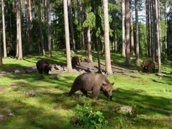 • Klo. 16:00 lähtö karhukojulle, ensin lyhyt matka autolla ja sitten noin puolen tunnin kävely läpi metsän. Yö kojulla.