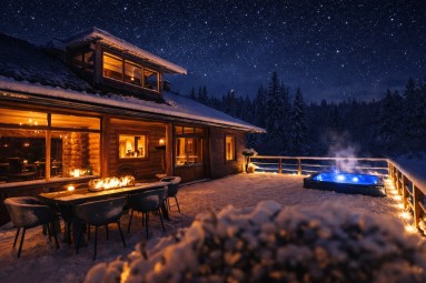 Kesäpäivät kuluvat terassilla, lammen äärellä ja ulkoporealtaassa rentoutuen. Iltaisin voi grillata, istua pitkään kesäyössä ja lämmittää puulämmitteisen kelosaunan juuri omaan tahtiin. Mökin suuret ikkunat ja suora kulku terassille tuovat luonnon osaksi oleskelutiloja, ja maisemat lammelle viimeistelevät kesäisen lomatunnelman.